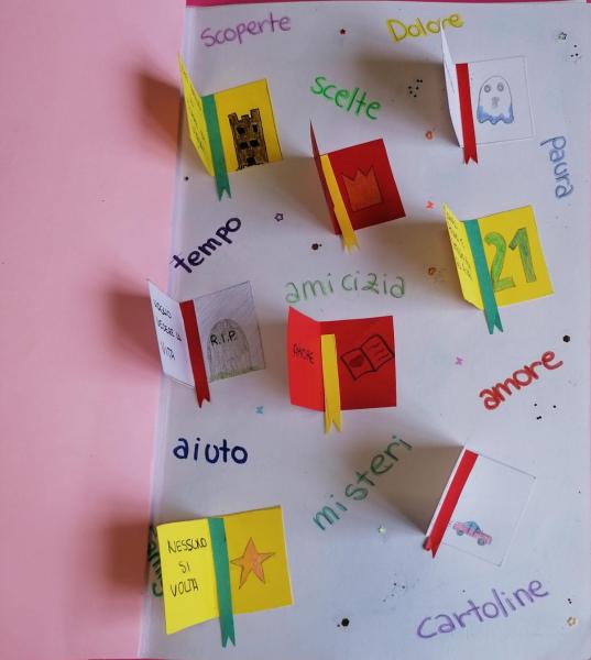 Anche la Scuola Secondaria di primo grado ha raccolto i buoni frutti del proprio lavoro: gli alunni della II A si sono spinti oltre i confini con un graphic novel e hanno concluso con la creazione di un pannello di indicazioni letterarie; gli alunni della II B si sono imbarcati in modo divertente nell'impresa di scegliere un libro e si sono avventurati nel mare delle parole fino a scoprire anche quelle nascoste in un silent book; gli alunni della IIC, invece, hanno ritrovato esperienze ed emozioni personali tra le pagine di un libro; infine i ragazzi della III E hanno dato voce ai libri con interessanti audio recensioni.